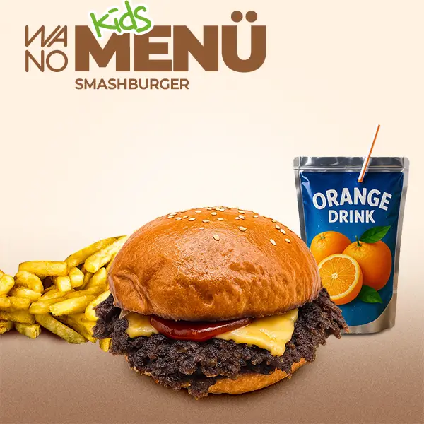 Cheeseburger mit Ketchup + kleine Pommes und ein Trinkpäckchen